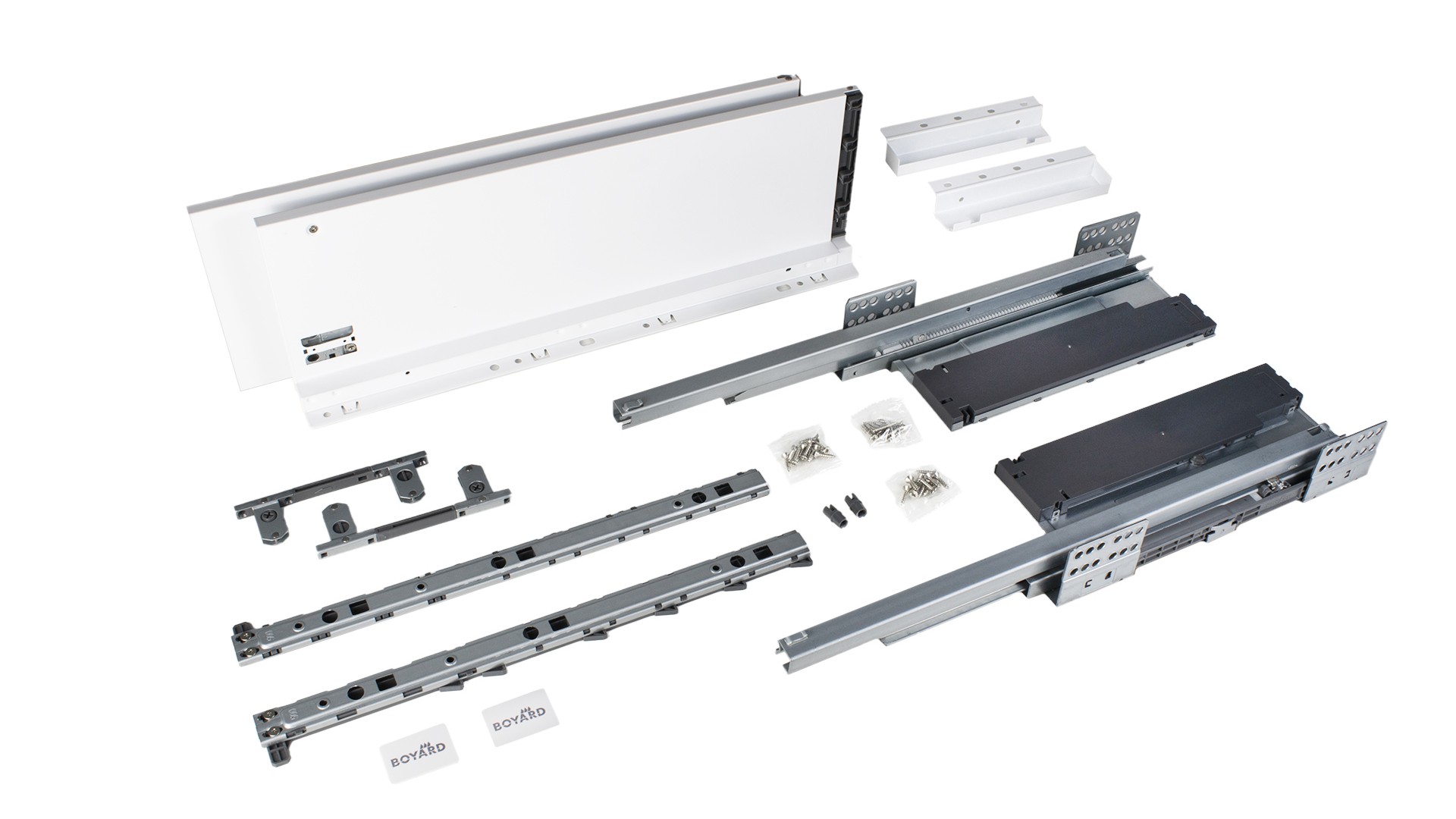 СТАРТ ПУШ+СОФТ SB40 — комплект систем выдвижения для сборки высокого выдвижного ящика с прямыми боковинами высотой 167 мм для мебели без ручек с открытием от нажатия и плавным доведением.