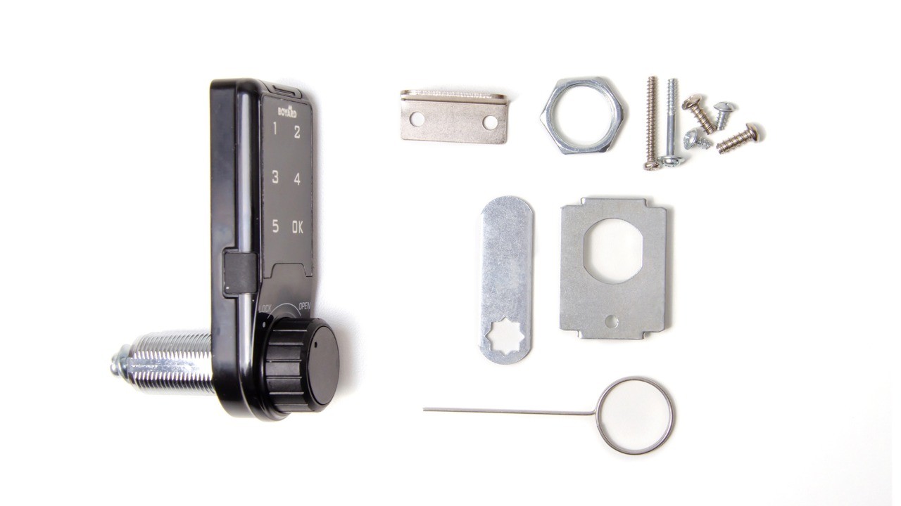 Замок состоит из сенсорной клавиатуры на лицевой части фасада, а также поворотного механизма с обратной стороны фасада, который открывает / блокирует его в зависимости от набранного кода. Для установки замка потребуется просверлить сквозное отверстие в фасаде.
