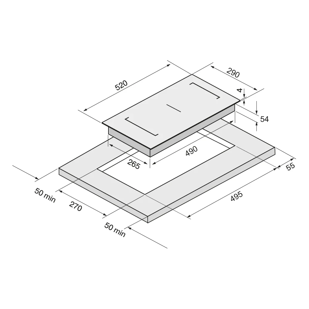 Диаметр и мощность конфорок, мм/кВт: Дальняя: 190/210 мм * 1,8/2,1 кВт; Ближняя: 190/210 мм * 1,8/2,1 кВт; Flex зона: 390х210 * 3/3,6 кВт